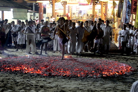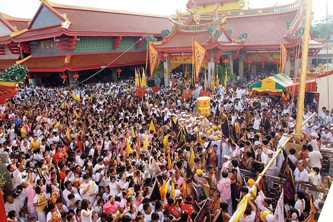 กิจกรรม เดือน ตุลาคม ประเพณีถือศีลกินผัก พิธีกรรมอัญเชิญพระ พิธีลุยไฟ พิธีสะเดอะเคราะห์ พิธีส่งพระ ผู้ว่าราชการพร้อมคณะตรวจเยี่ยมศาลเจ้าศาลเจ้าทุกศาลเจ้า ปลายแหลมสะพานหิน อ.เมือง จ.ภูเก็ต