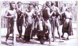 กระทุ้งดินเป็นจังหวะแล้วมีการร่ายรำและร้องไปตามจังหวะในพิธีกรรม